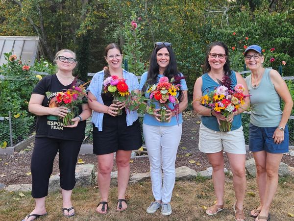 Hands-on learning experiences covering dahlia growing, floral design, and container gardening. Small class sizes ensure personalized attention and plenty of time for questions.